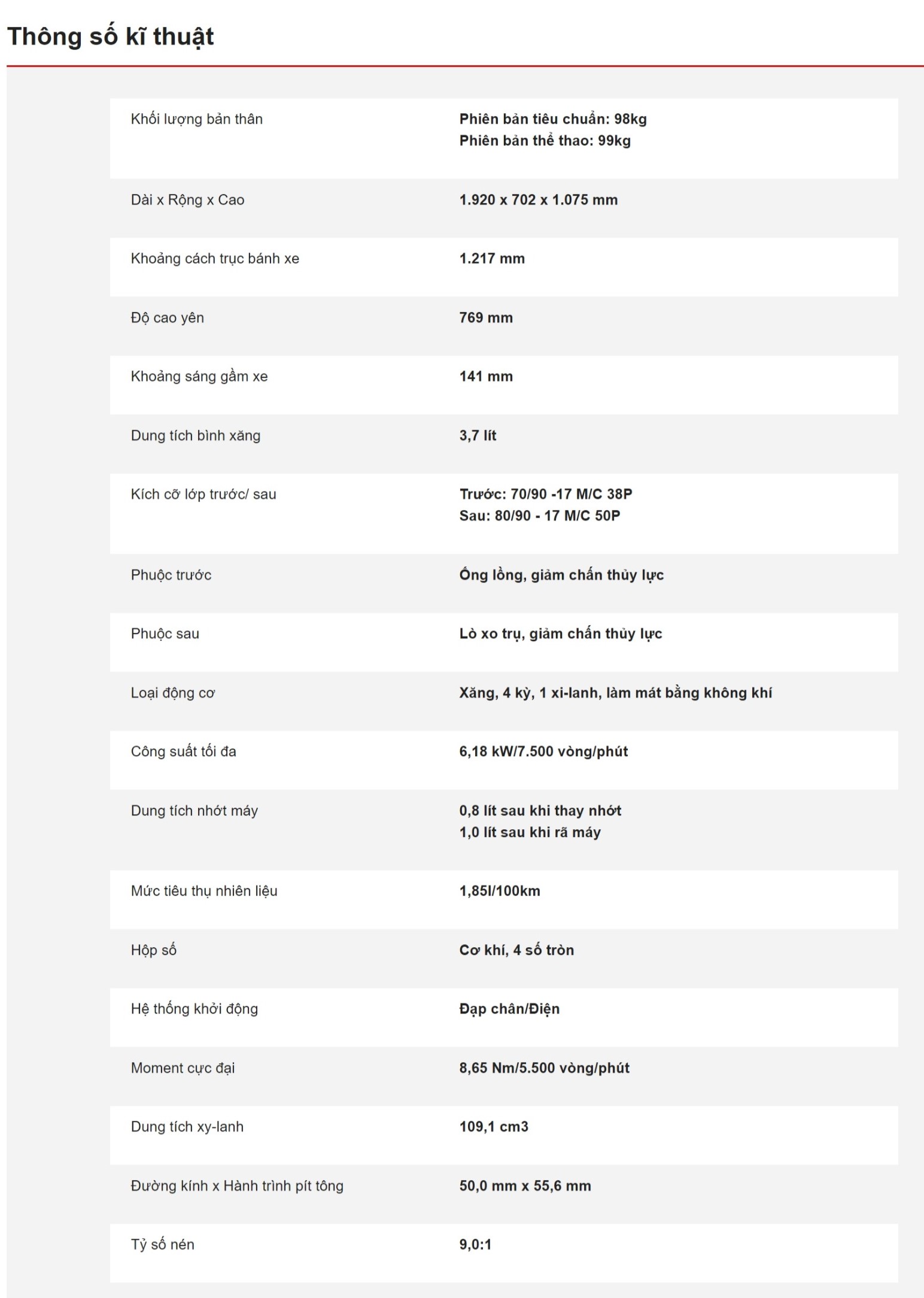 ◉ Hàng chính hãng Honda Việt Nam