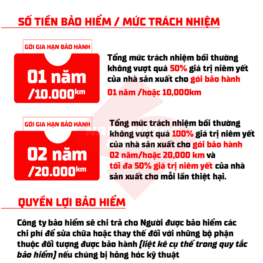 - Mức 1: Gia hạn bảo hành thêm 1 năm/10.000km (Bảo hành năm thứ 4)