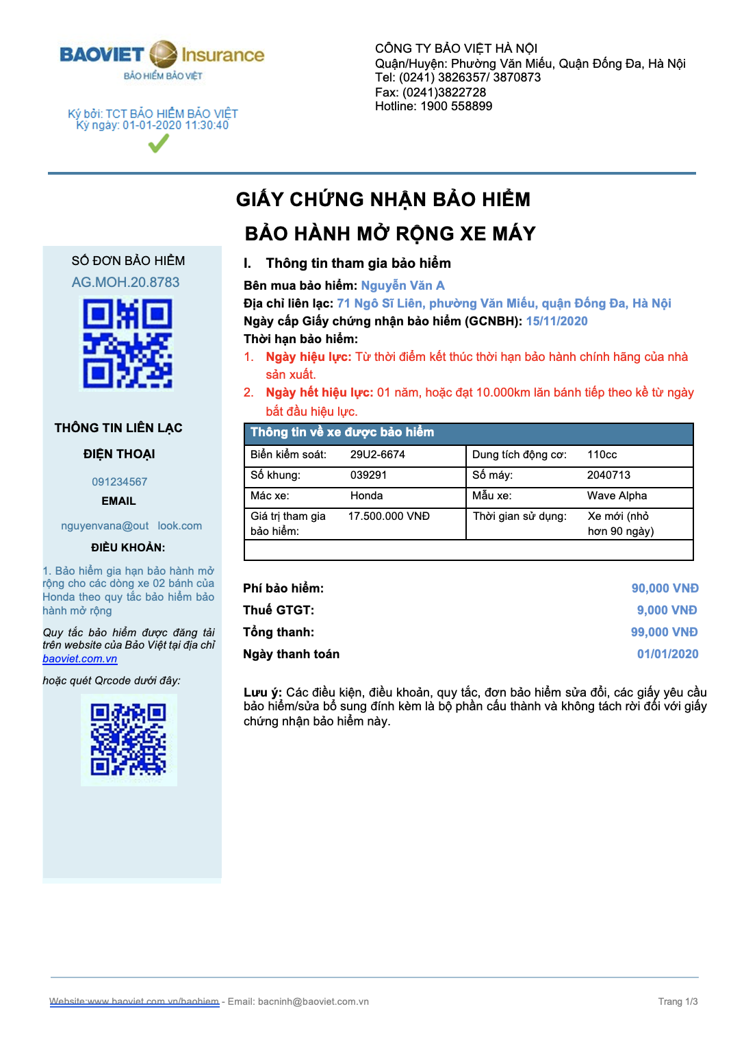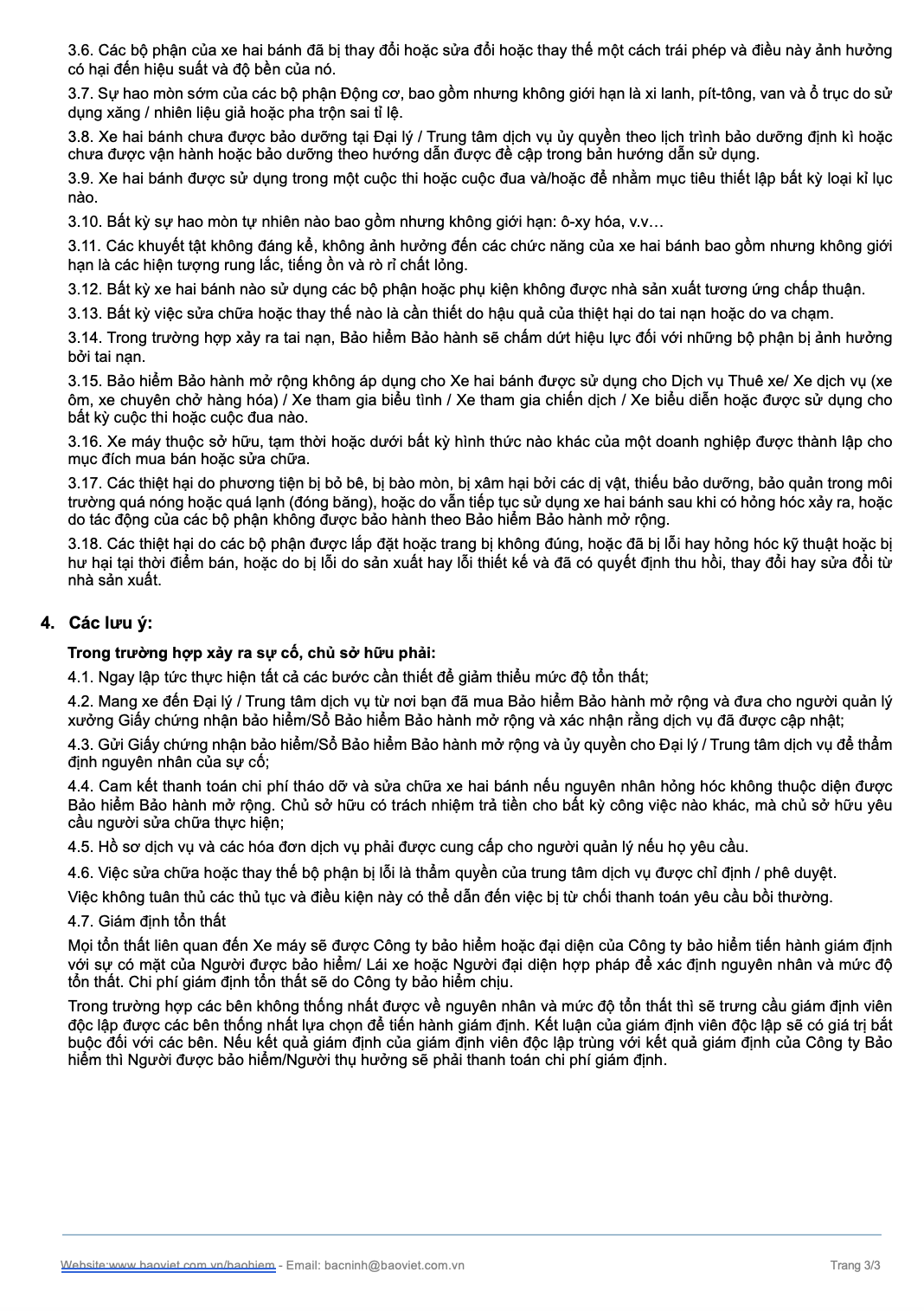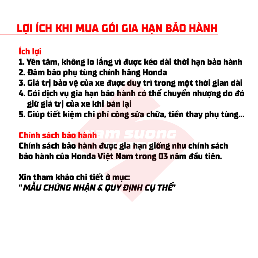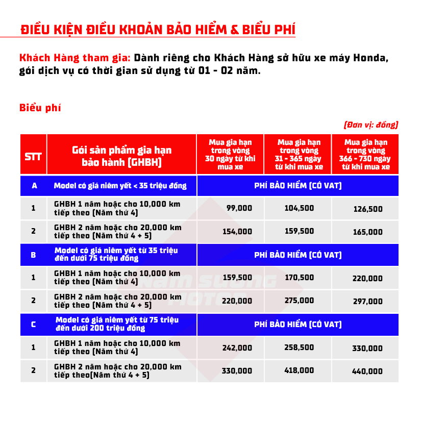 ✓ Xe Honda trị giá ≤ 35 triệu đồng ✓ Mua gia hạn từ 366-730 ngày kể từ ngày mua xe.
