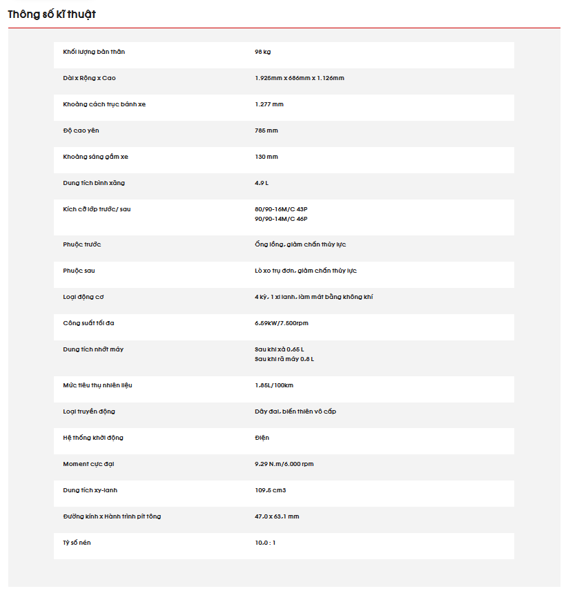 và tích hợp những công nghệ tiên tiến: hệ thống phun xăng điện tử (PGM-FI),động cơ tích hợp bộ đề ACG,